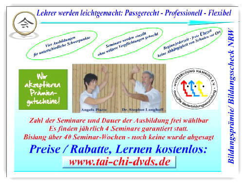 Lehrer-Ausbildung Taijiquan Qigong in ganz Deutschland: Praktisch, zeitgemäß und effektiv! Persönliche Beratung durch die Seminarleitung: Tel 040 2102123