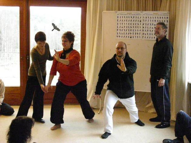 Hier werden Aspekte der Tai-Chi-Philosophie an praktischen Beispielen durchgesprochen und die an der Ausbildung Teilnehmenden korrigieren sich reihum.
